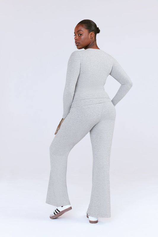 SCULPTING LOUNGE MULTIWAY FOLD WAIST FLARED TROUSERS - GREY MARL