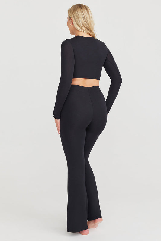 SKINLUXE HIGH WAISTED FLARED LEGGING - SHADOW BLACK