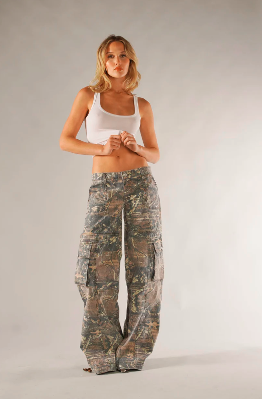 Discover urban style on the move with our Nomad Camo Cargo Pants. Crafted for the modern woman, these pants blend classic camouflage with contemporary streetwear. With ample pocket space and a comfortable fit, they're perfect for the woman on the go who values both style and functionality
