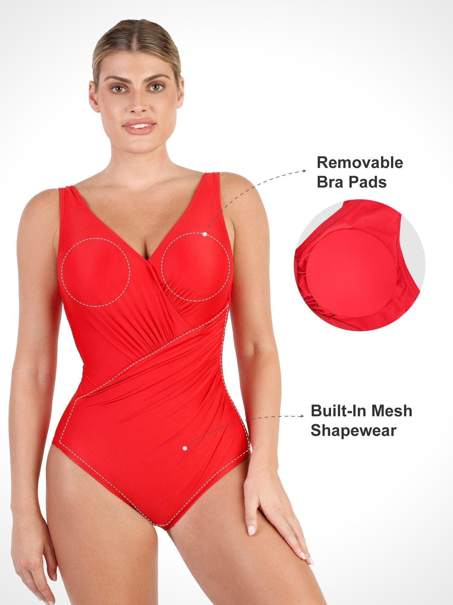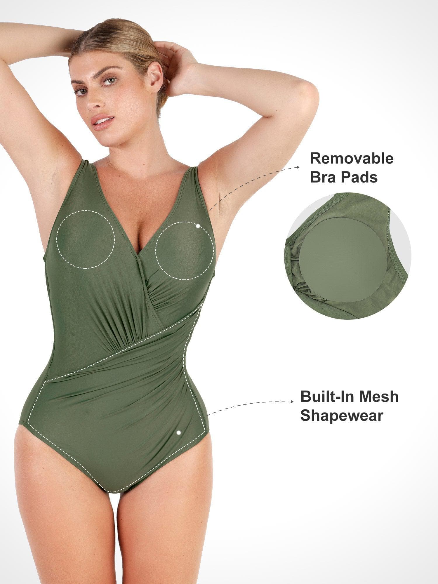 Lounge at the beach and swimming pool in fresh style with this Popilush Deep-V Neck One-Piece Shapewear Bodysuit, which will give you a sleek, sophisticated look.