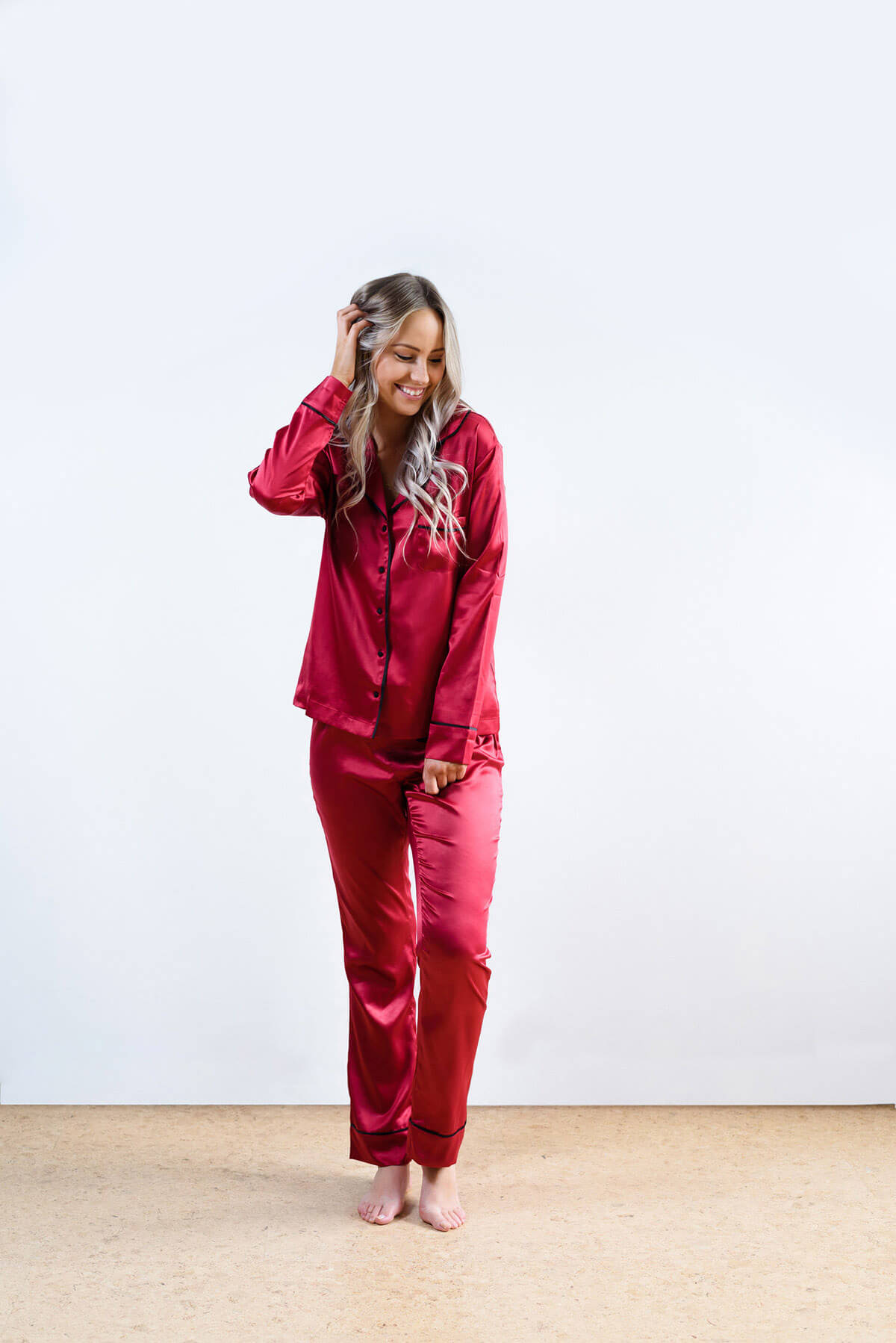 Our rouge pyjamas are inspired by Fenech and the colourful Rue Saint Claire, sometimes referred to as 'Little Venice'.
