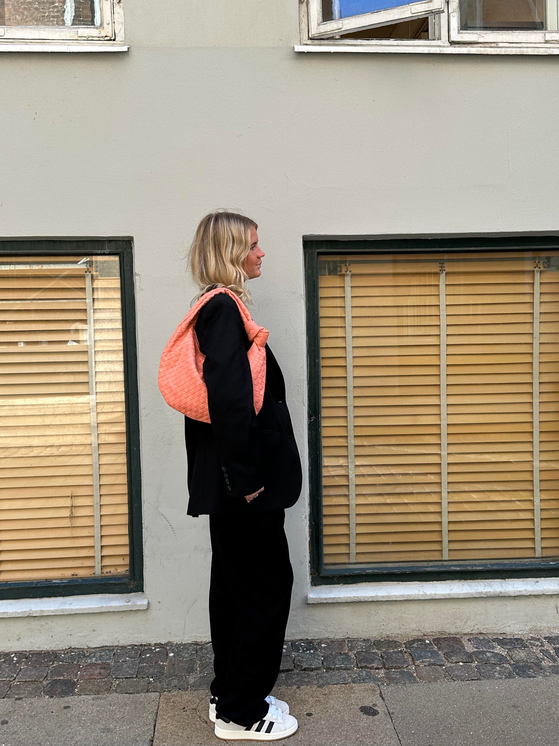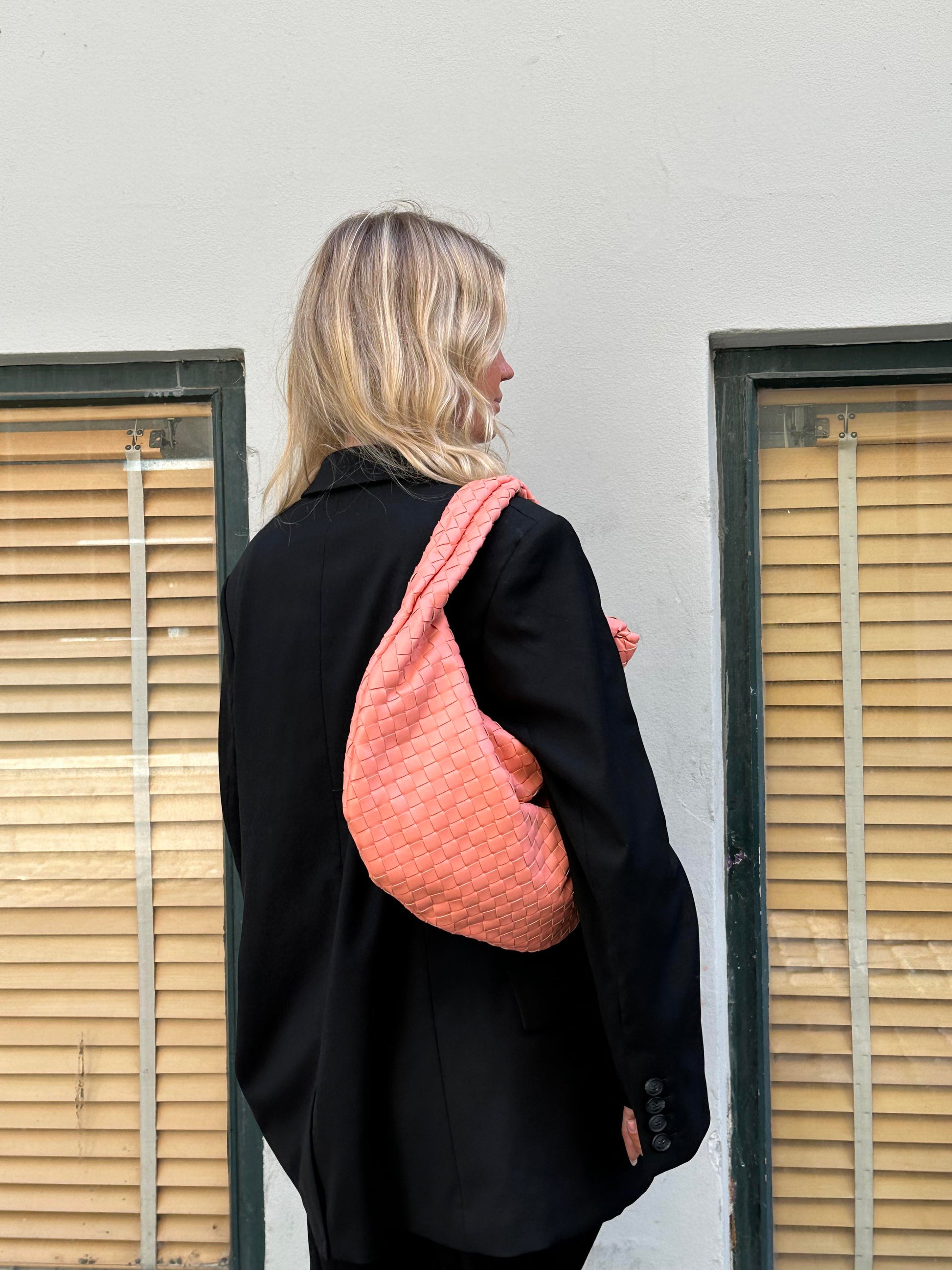 Our Florence shoulder bag has a round shape and a woven/braided design with knot detail. The bag has a large main compartment with zip closure, and a smaller compartment with zip inside the bag. Perfect for a city trip or everyday life.