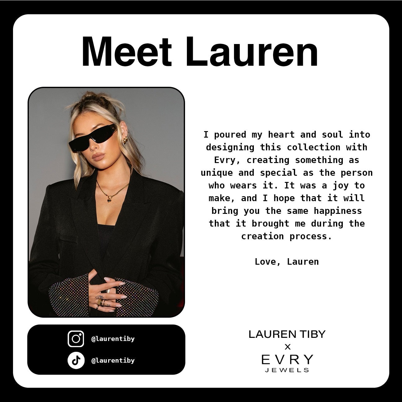 I poured my heart and soul into designing this collection with Evry, creating something as unique and special as the person who wears it. It was a joy to make, and I hope that it will bring you the same happiness that it brought me during the creation process.