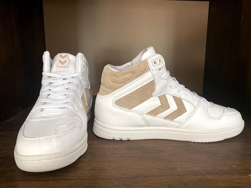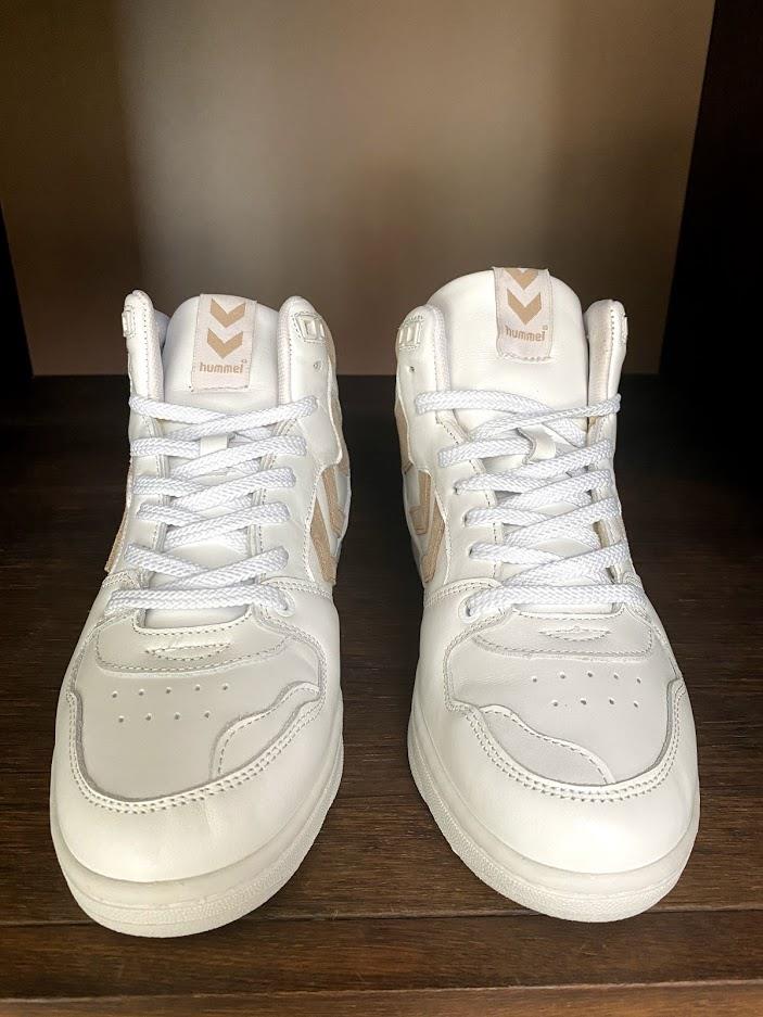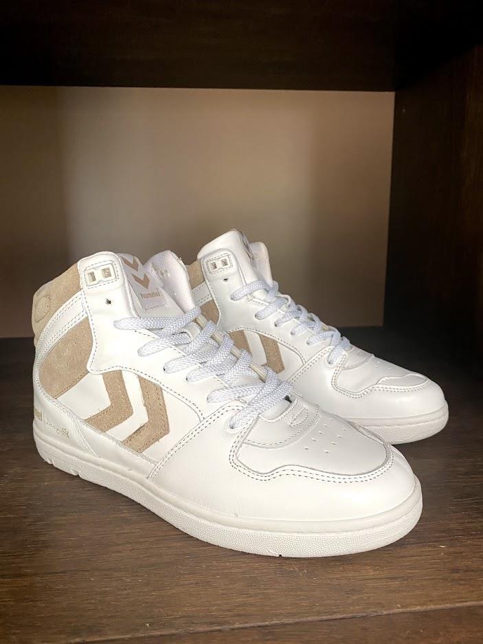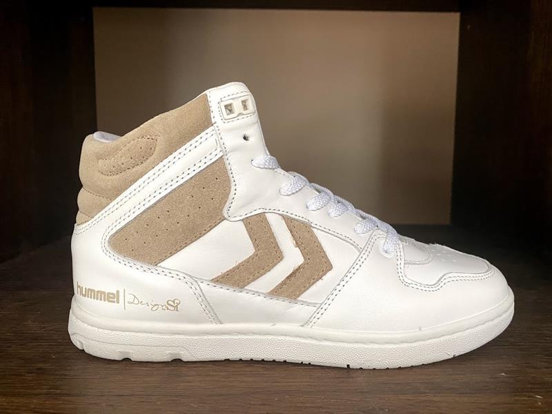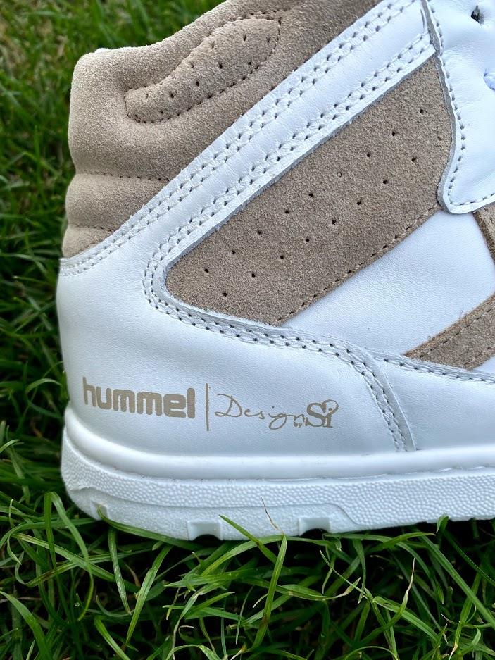 The shoes are made in collaboration between Designby Si and Hummel and have a logo