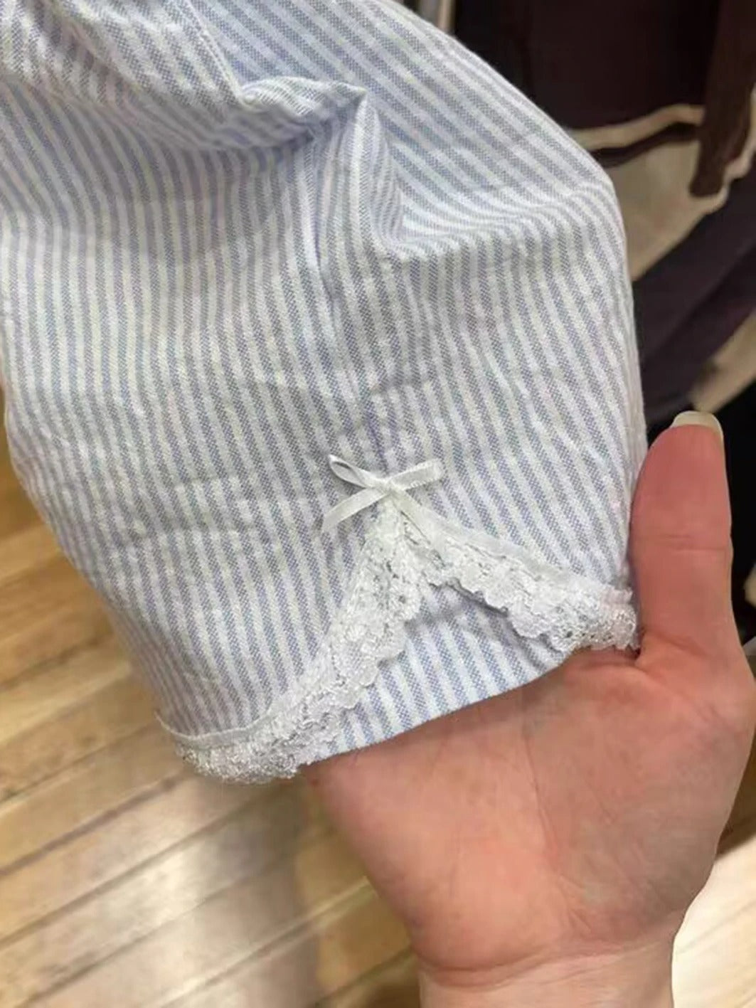 Indulge in relaxation with a hint of sophistication in the Lydia Lace Shorts, tailored for your comfort. These lounge shorts, tinted in a calming blue hue, feature delicate lace accents, elevating your loungewear ensemble with a touch of refined charm.