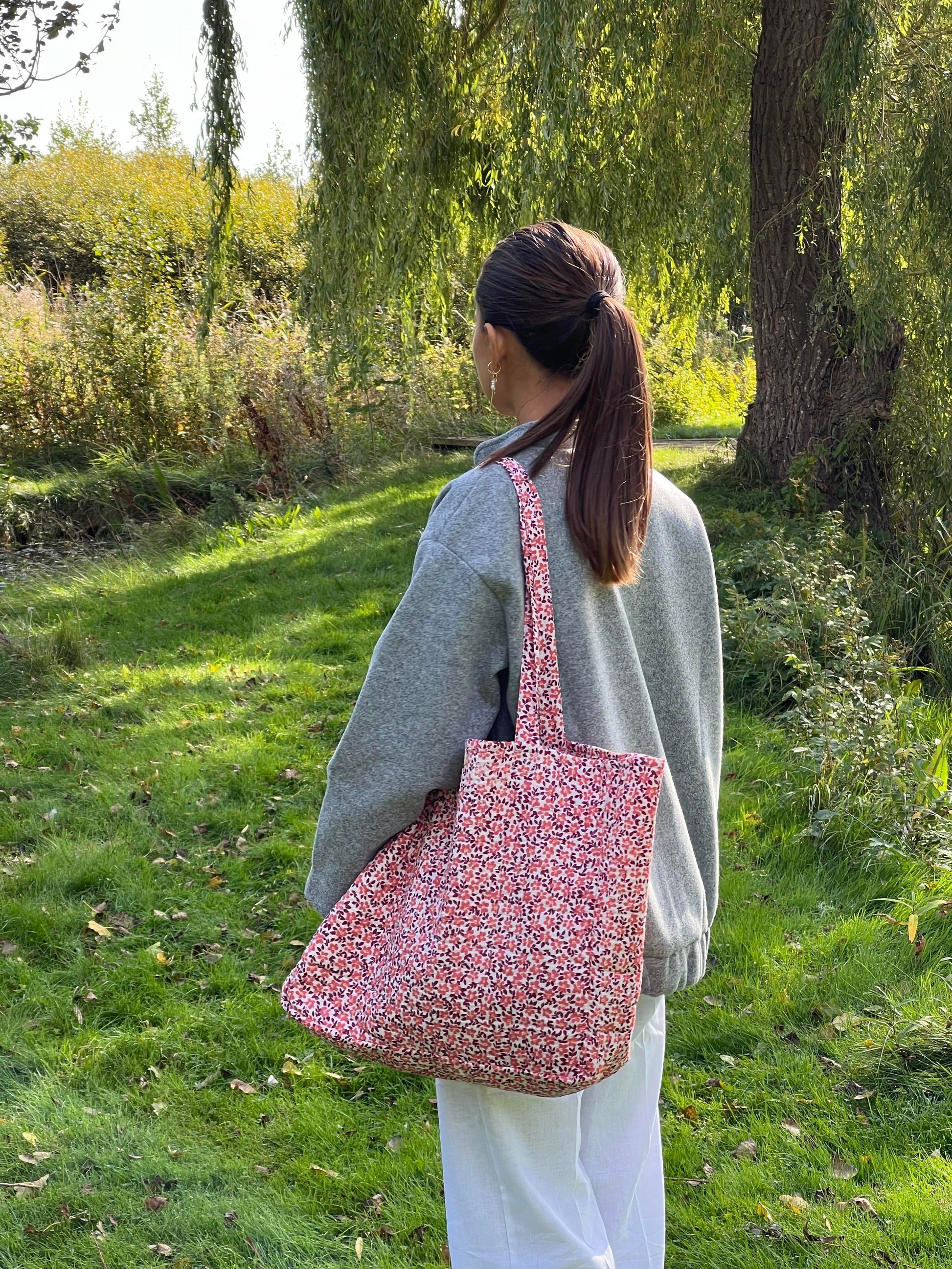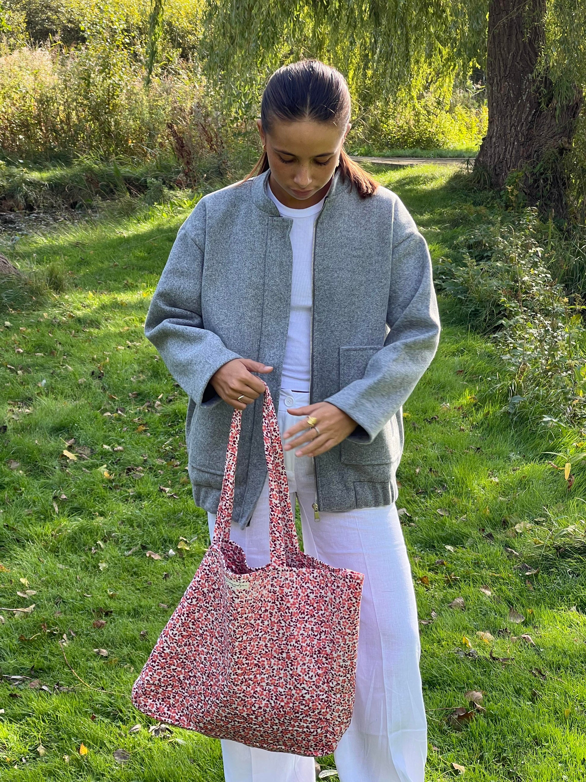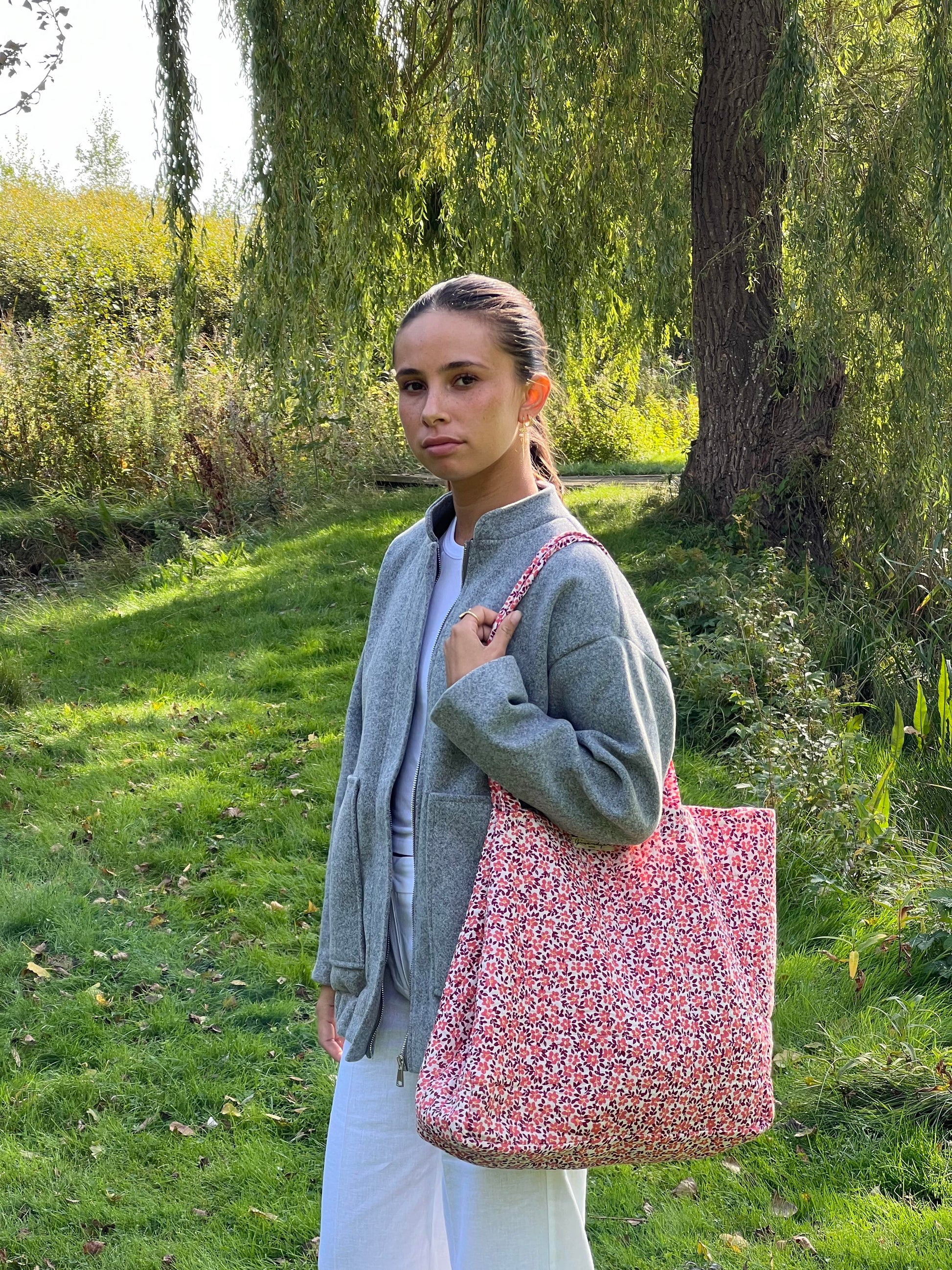 Large tote bag with floral print and in a delicious quality material. This bag is perfect for everyday use due to its large size. The bag has 2 long straps, so you can easily throw it over your shoulder.