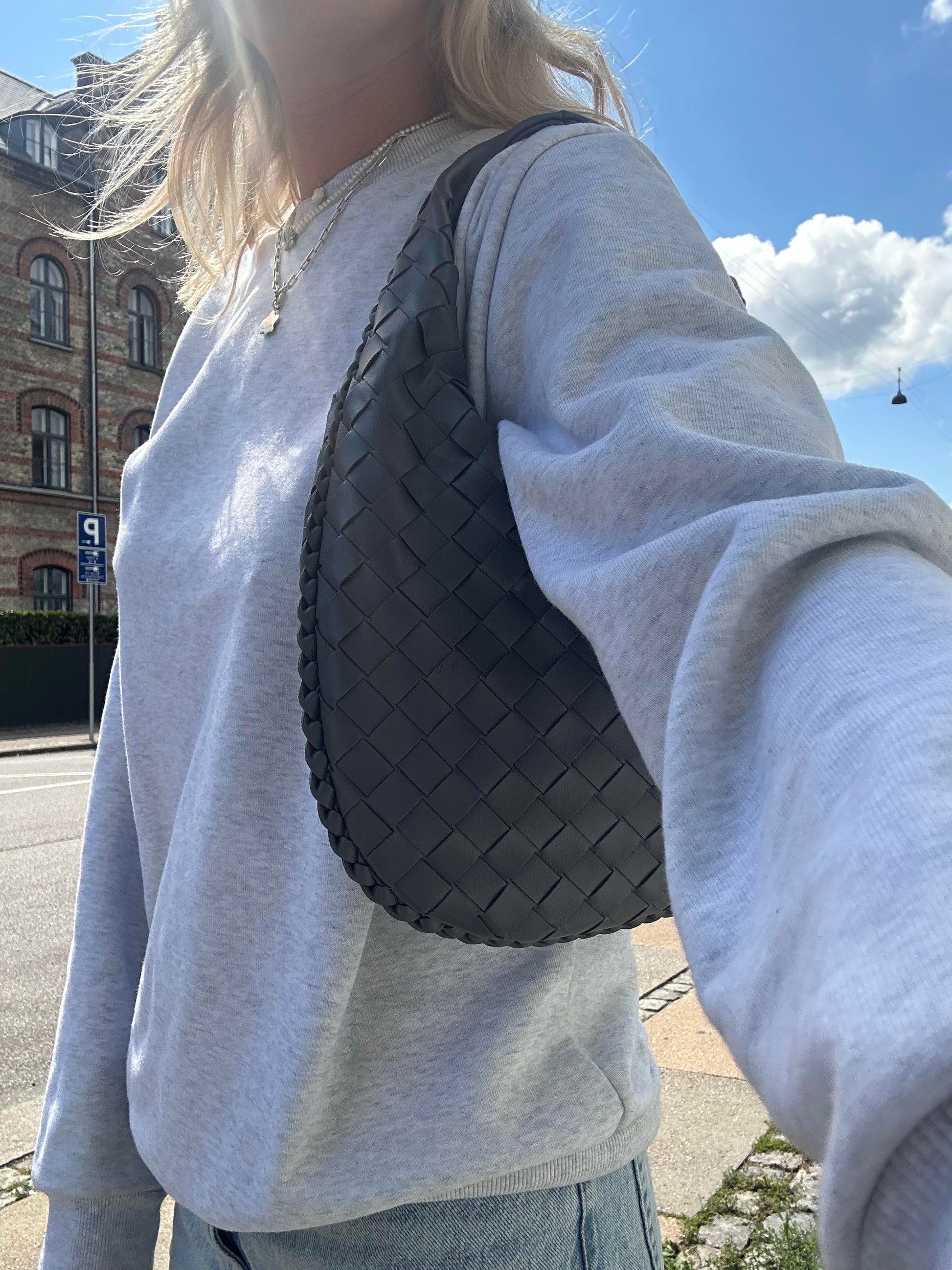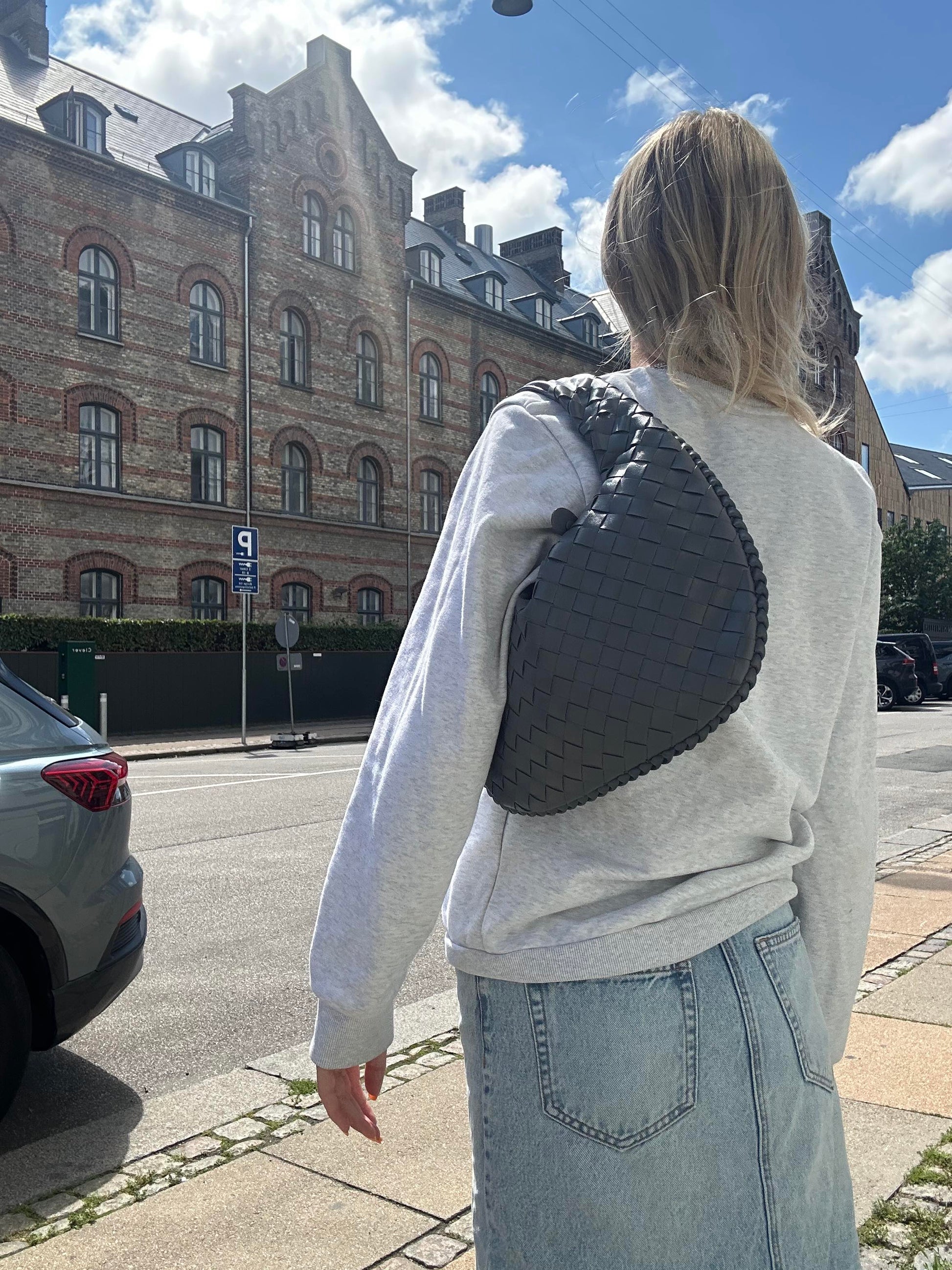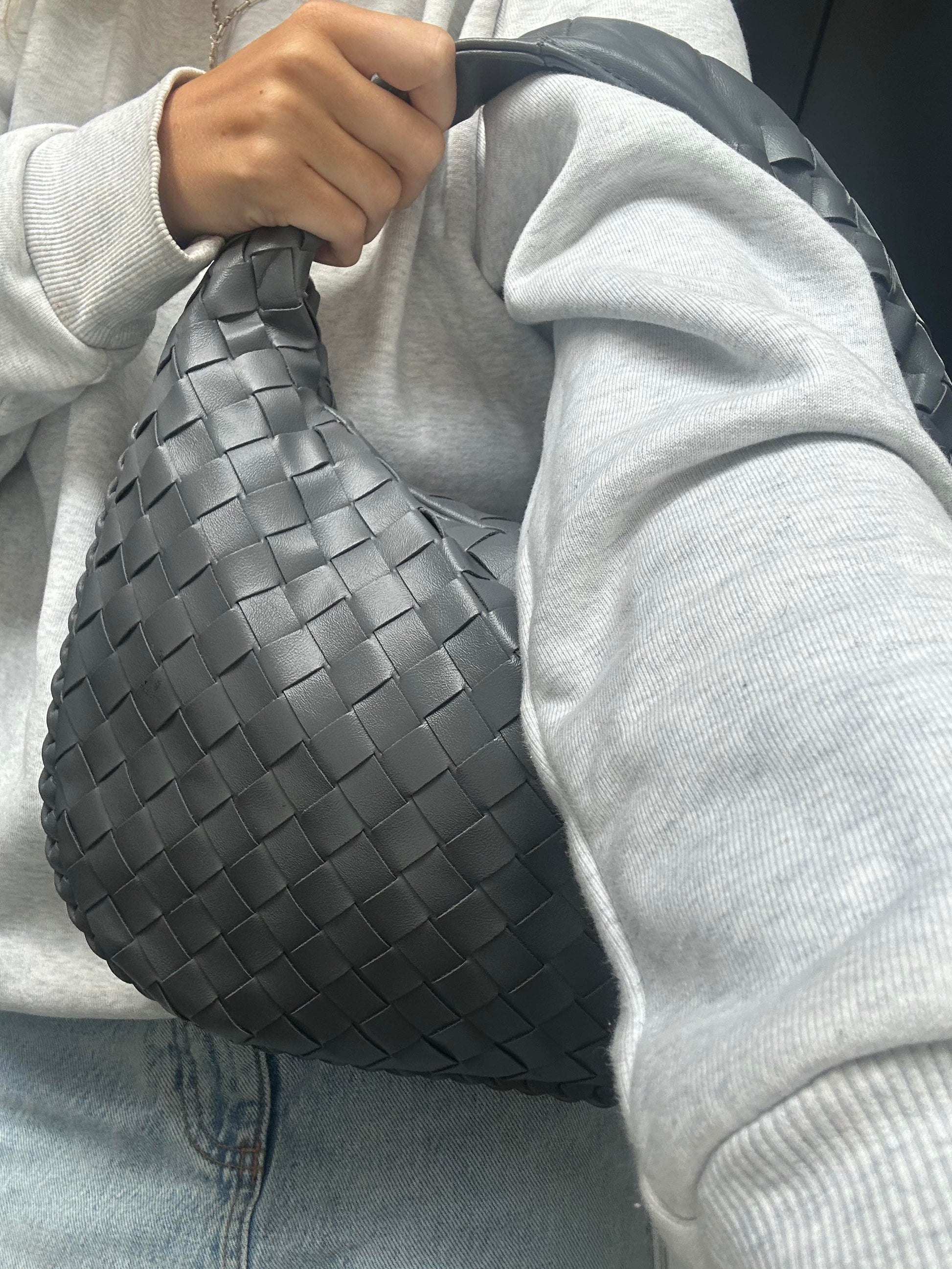 Our Paris shoulder bag has a round shape and a woven/braided design. The bag has a large main compartment with zip closure, and two smaller compartments with zip inside the bag and a small open pocket.Color: Grey