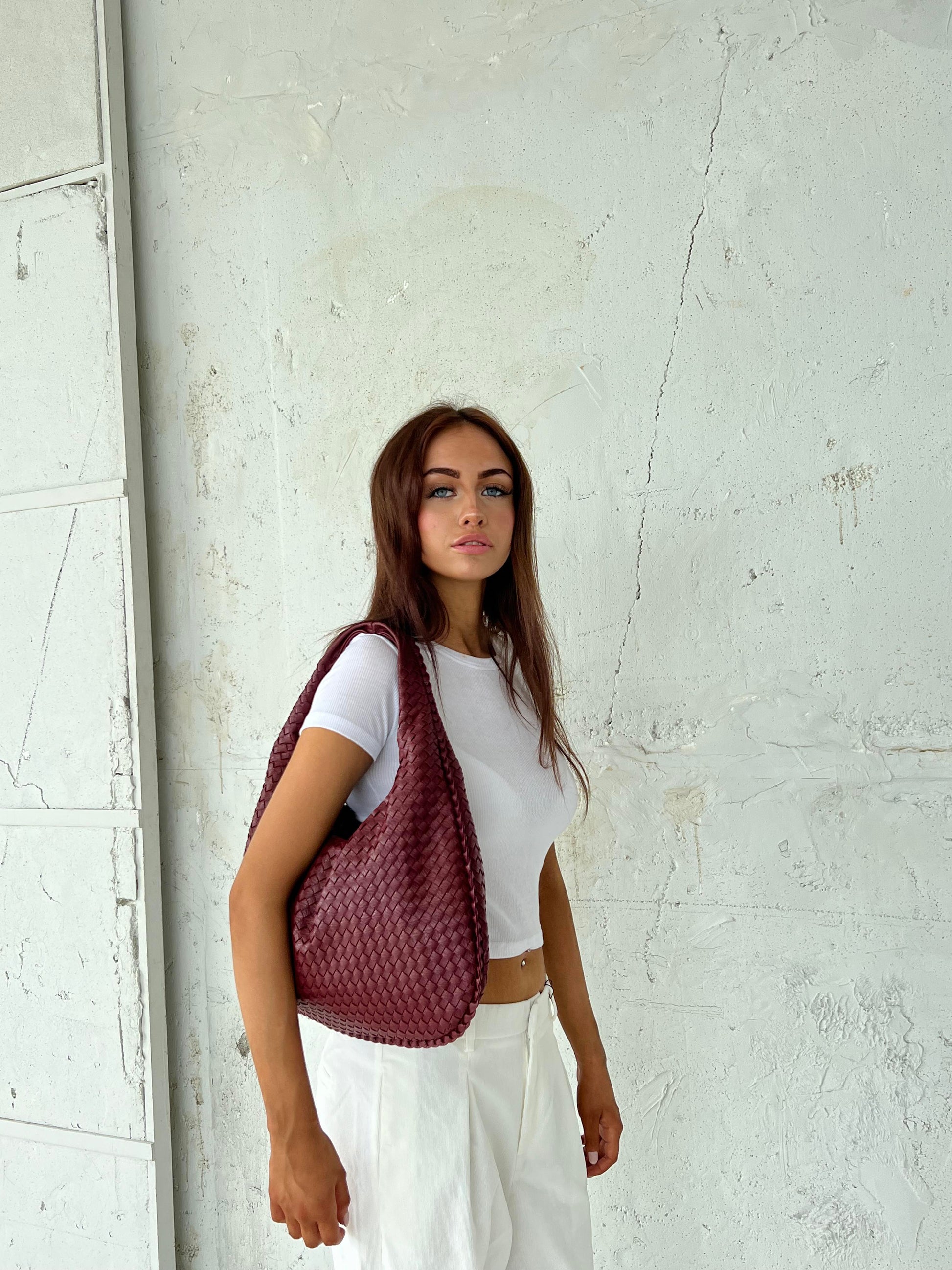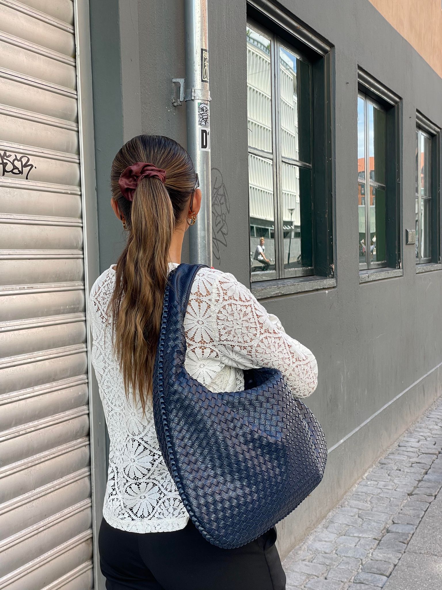 Introducing your essential everyday accessory, the Must-have shoulder bag, your new favourite go-to bag. With its chic round shape and intricate woven/braided design, this bag stands out. It features a spacious main compartment with a secure zip closure, along with two smaller zip compartments inside and a convenient open pocket. This must-have bag offers ample space and can even accommodate a 13" MacBook.