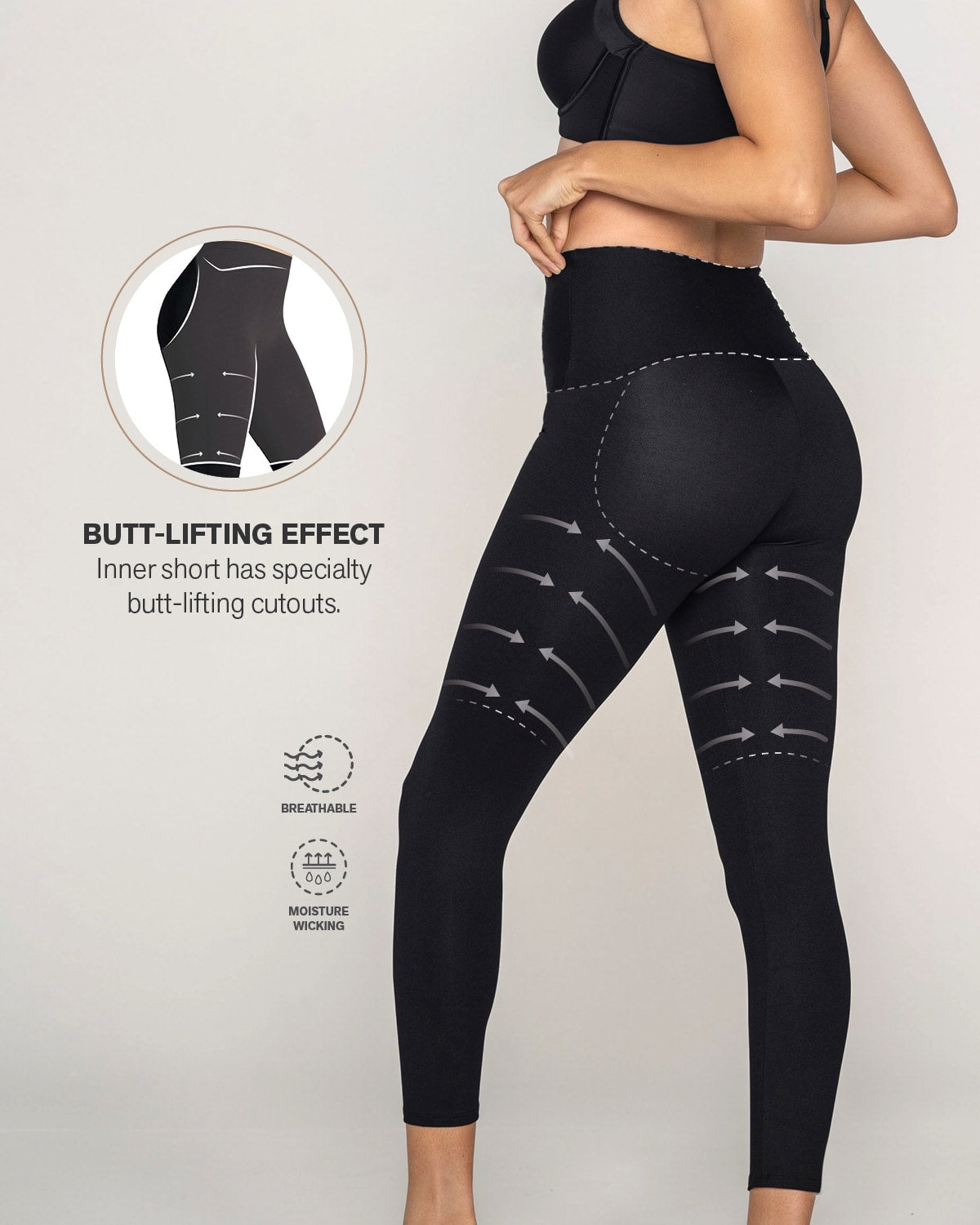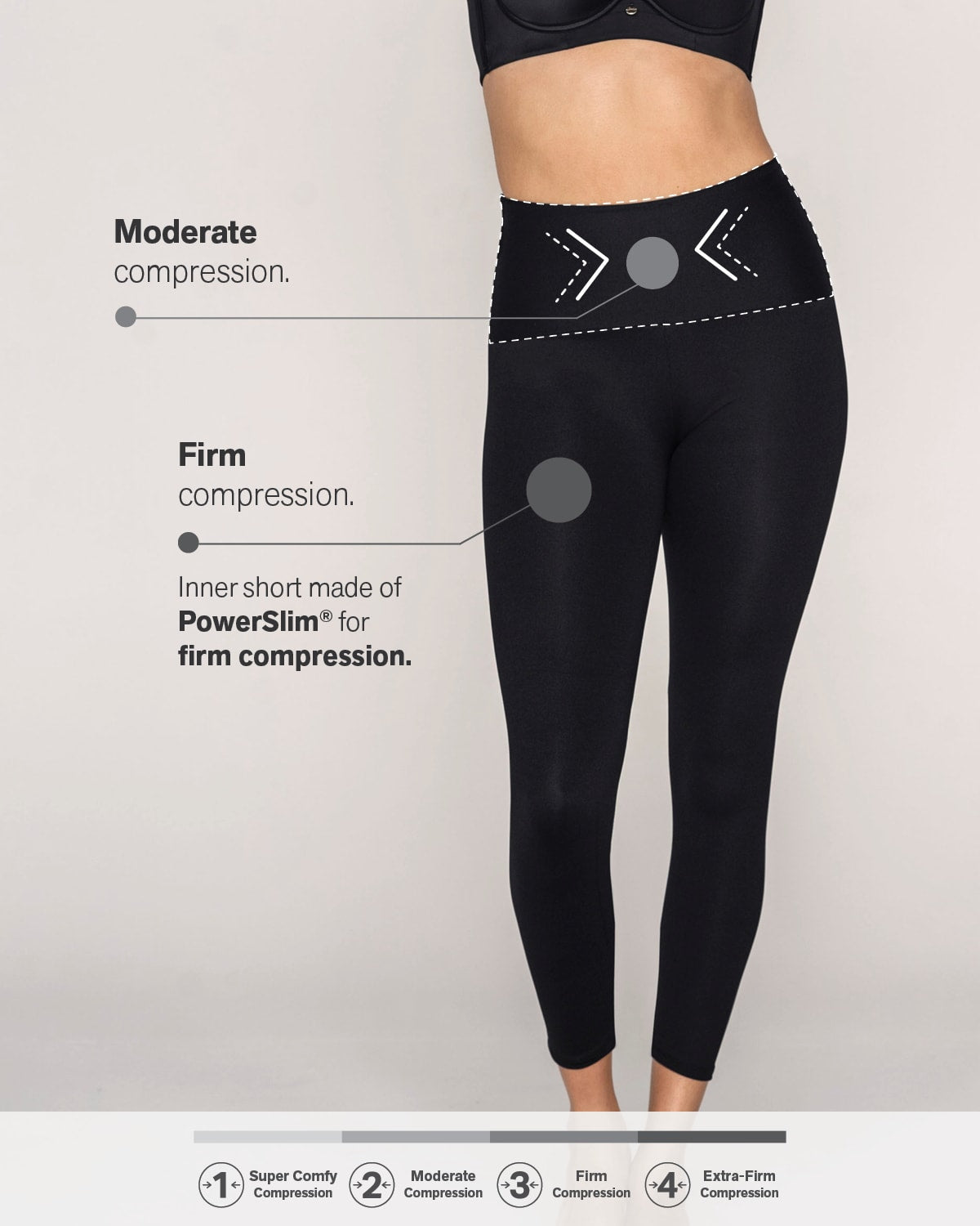 Elevate every activity in this legging! The outside is made from soft, breathable compression fabric. Inside is a shorts-style lining of our moisture-wicking PowerSlim® firm compression mesh fabric to sculpt and support from your tummy down to your thighs. Strategic cutouts in the inner shaper short provide a butt-lifting effect. This high-waisted legging has a wide waistband that stays put no matter what. Wear it with every outfit. Nobody will know your secret!