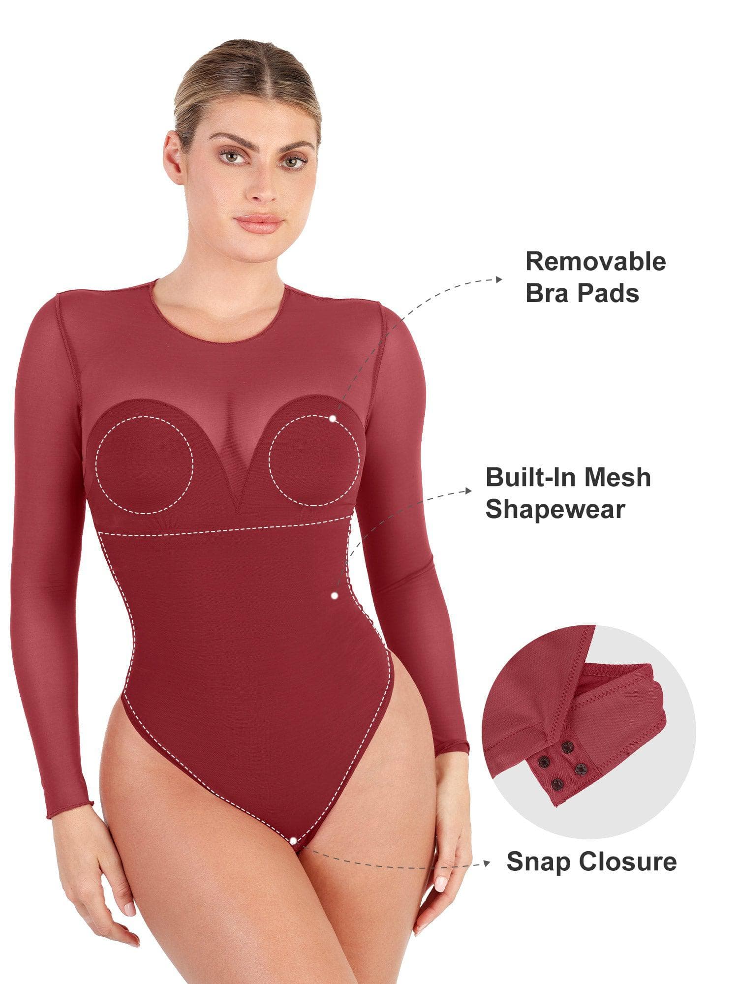 The Sheer Mesh Shapewear Long Sleeve Thong Bodysuit gives us an ultra-silky feel combined with power mesh that feels like a hug while gently supporting your every curve. The fine mesh structure is breathable and with 360 degrees of stretchiness, it's the everyday essential you will never want to go without.
