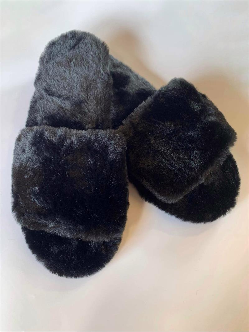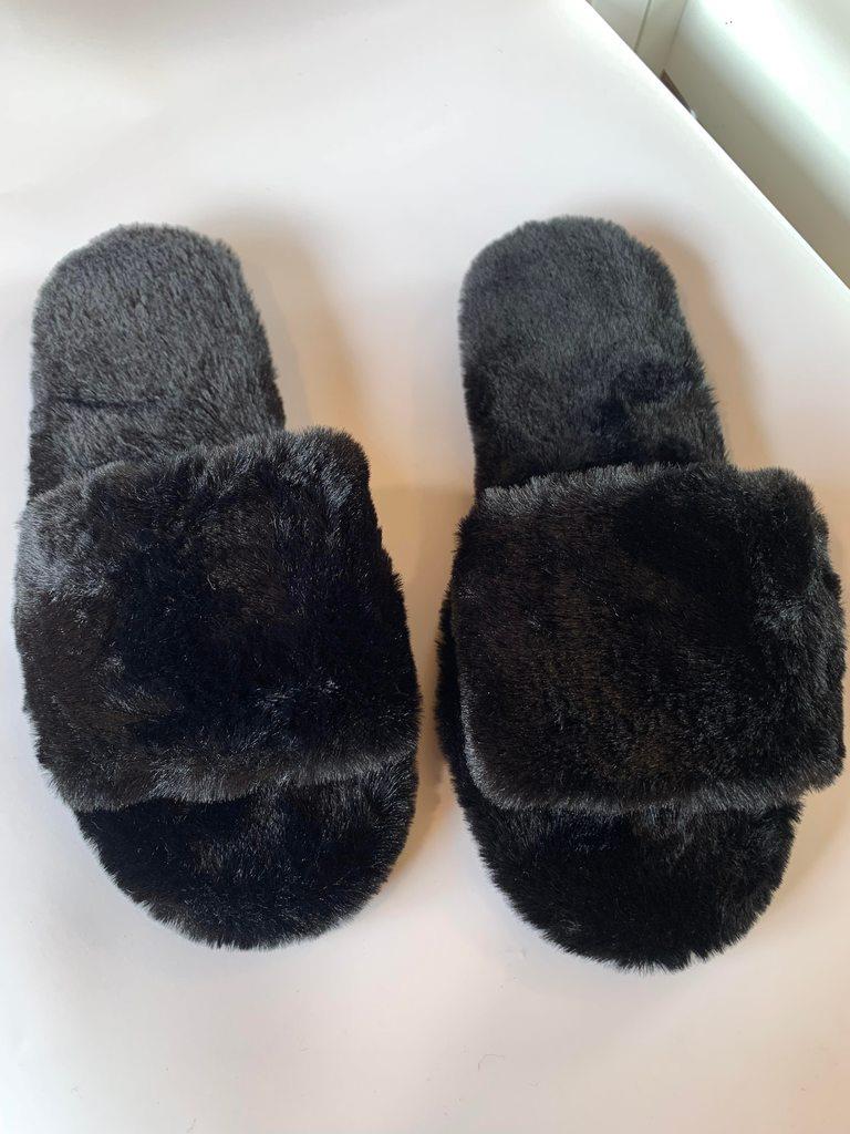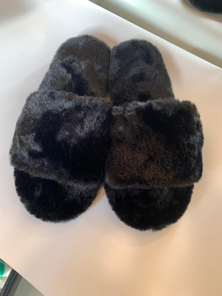 Soft fur sandal with rubber sole. Perfect for wearing inside in the cold months.