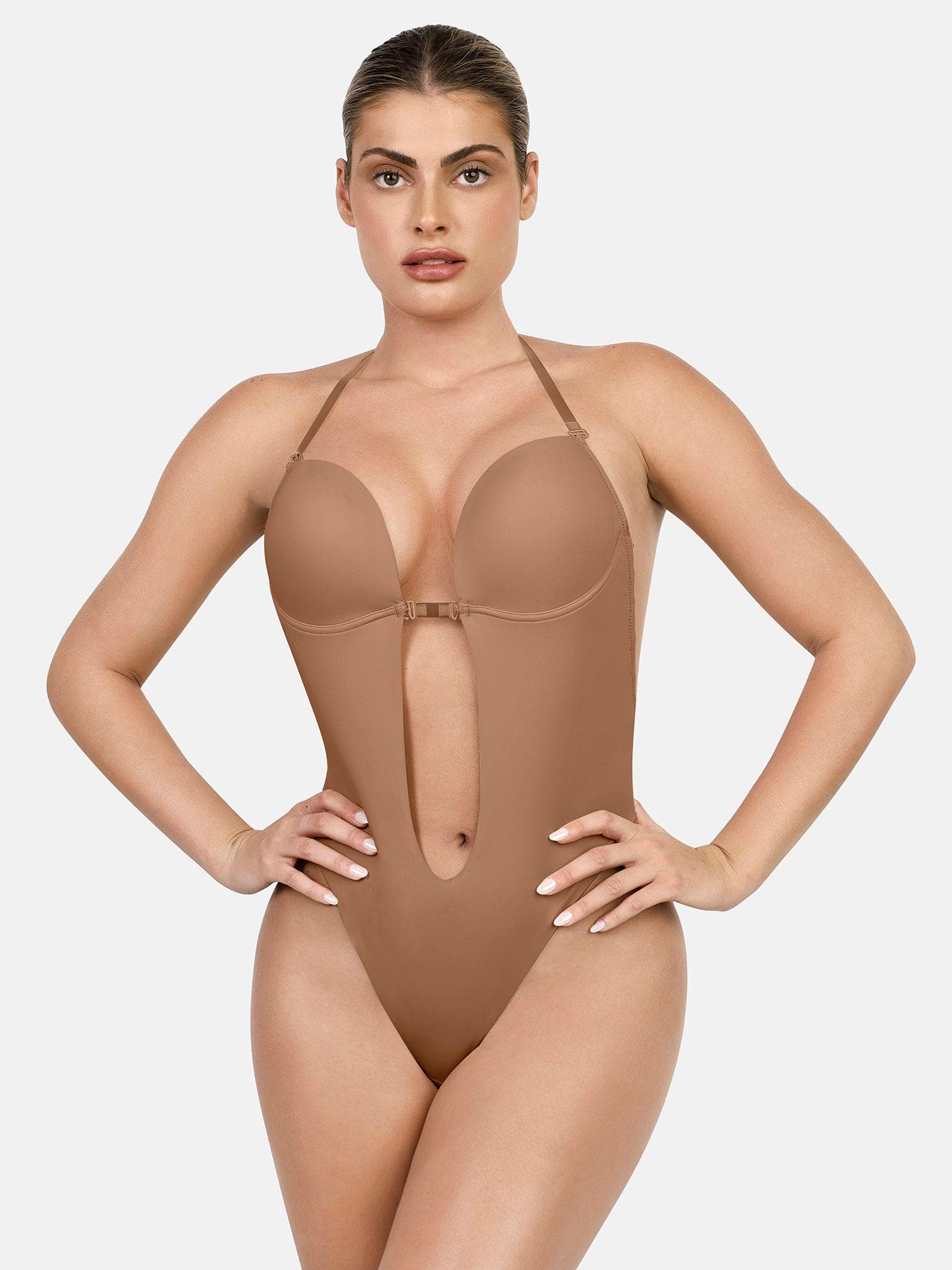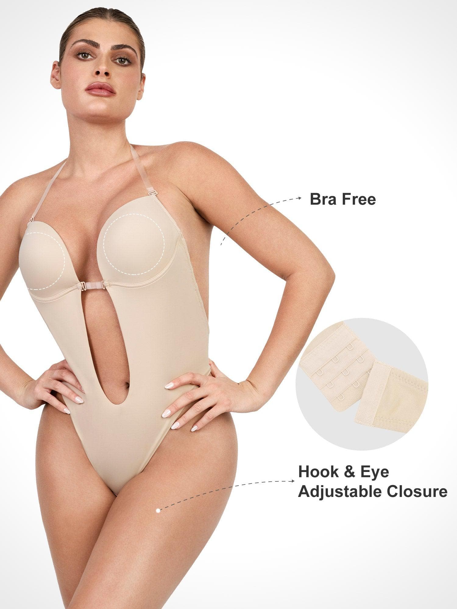 Introducing our plunging, strapless bodysuit – your go-to solution when you need invisible shapewear beneath any outfit. Embrace your bold side in daring dresses or tops for a night out, or discreetly wear it beneath wedding gowns, formal attire, and everyday low-back dresses.