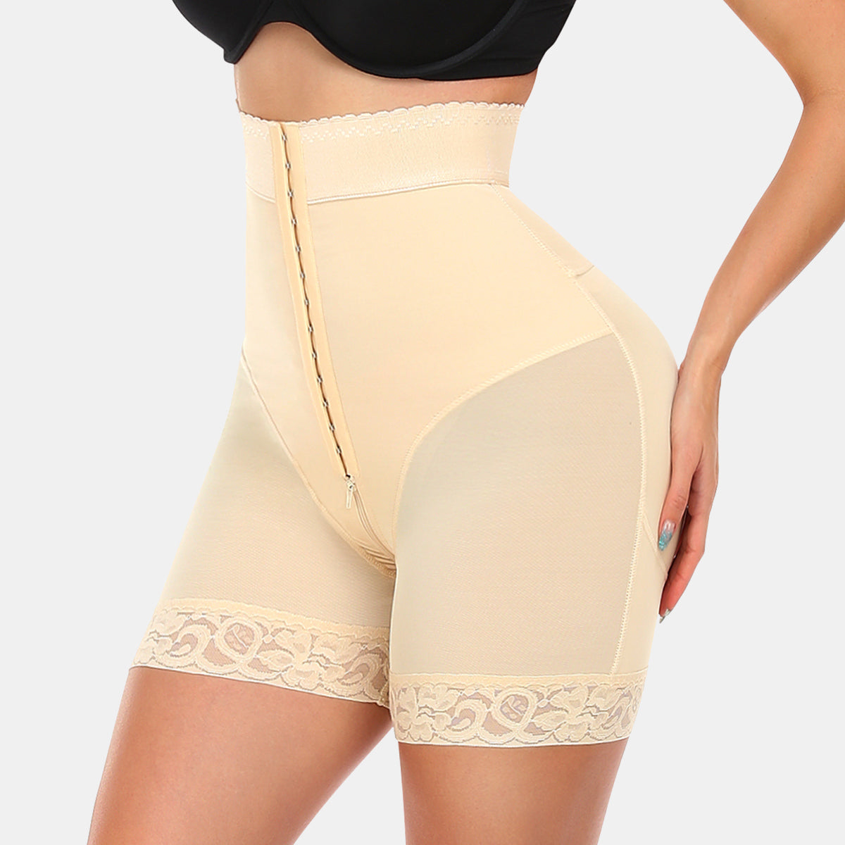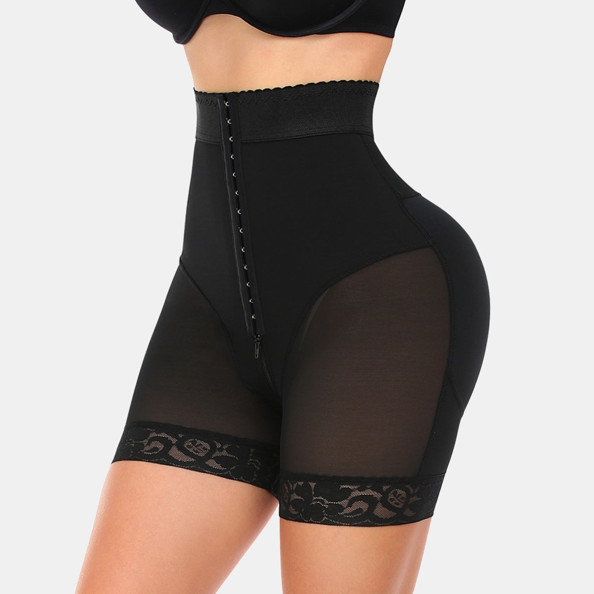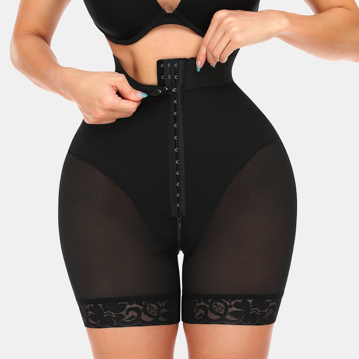 • Hook and eye closure on the front • Zipper crotch design for an easier toilet. • Anti-slip lace leg openings are used to firmly fix the pattern and prevent the fabric from falling off and not rolling • High waist design, which tightens the belly and hips to make the belly smooth and tight, naturally raising the hips, giving you the desired S-curve and creating a sexy hourglass figure instantly • 90% Polyester, 10% Spandex